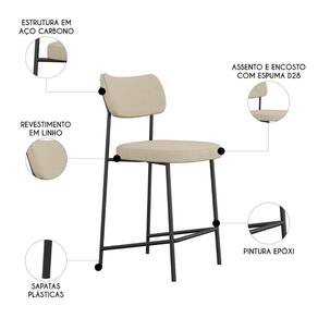 Banqueta Cozinha Média Kit 2 Milli Linho Areia A14 - Mpozenato