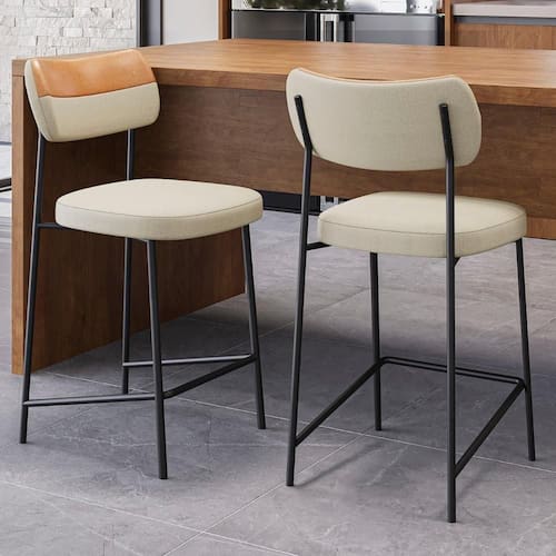 Banqueta Cozinha Média Kit 2 Milli Linho Caramelo/Areia A14 - Mpozenato