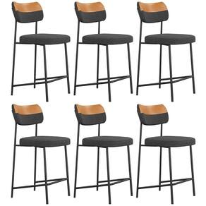 Banqueta Cozinha Média Kit 6 Milli Linho Grafite/Caramelo A14 - Mpozenato
