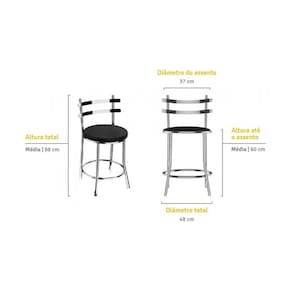 Material: Aço Cromado Altura do Assento até o Chão: 60cm Altura Total: 88cm Diâmetro do Assento: 37cm Diâmetro Total: 48cm Peso: 3,1kg Mais detalhes nas imagens do anúncio.