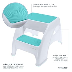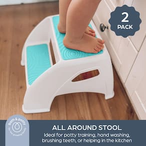 A banqueta Toddler & Me de 2 degraus com uma parte superior ondulada segura ajuda as crianças a darem os primeiros passos em direção à independência. Este banquinho extra resistente é ideal para treinar no banheiro e escovar os dentes, e a altura adicional é ótima para ajudar os pais em casa.