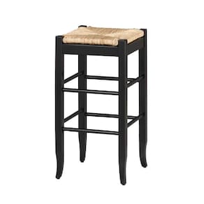 Banqueta de bar com estrutura de madeira Benjara Rush com pernas de sabre, preta e bege