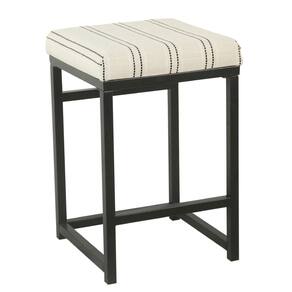 Assento acolchoado estofado em poliéster em um padrão listrado em preto e branco incorporado a uma barra de pé para maior conforto e mostra um estilo industrial - Dimensões: 16 L x 16 L x 24 H, em polegadas