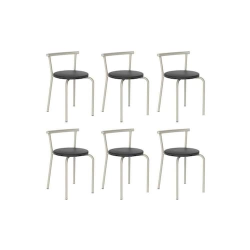 Banqueta Sala de Jantar 105 Kit 6 Uni Prata/Courano Preto - Carraro Abaixo segue os produtos do KIT: Banqueta Sala de Jantar 105 Kit 6 Uni Prata/Courano Preto - Carraro