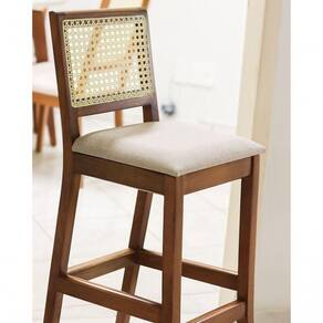 Banqueta de Madeira Maciça com Encosto em Rattan - Grécia - Art Salas