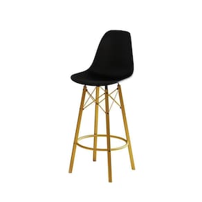 ATENÇÃO AS IMAGENS SÃO MERAMENTE ILUSTRATIVAS E PODEM SOFRER VARIAÇÕES DE COR E PEQUENOS DETALHES DE ACORDO COM O SEU MONITOR, ILUMINAÇÃO DO AMBIENTE E ATÉ MESMO A SUA PERCEPÇÃO VISUAL.Banqueta Eames Design Moderno Tubo de Ferro Dourado Assento Preto