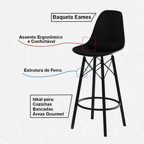 ATENÇÃO AS IMAGENS SÃO MERAMENTE ILUSTRATIVAS E PODEM SOFRER VARIAÇÕES DE COR E PEQUENOS DETALHES DE ACORDO COM O SEU MONITOR, ILUMINAÇÃO DO AMBIENTE E ATÉ MESMO A SUA PERCEPÇÃO VISUAL.Banqueta Eames Design Moderno Tubo de Ferro Preto Assento Preto
