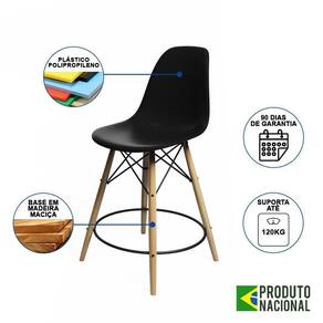 Banqueta Eames Eiffel De Madeira Assento Preto