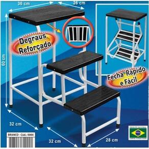 Produzida em aço SAE 1020 com pintura epóxi é perfeita para pequenos serviços domésticos do dia-a-dia, proporcionando acesso a locais mais altos com facilidade. Possui ponteiras em PVC que garante segurança durante o uso evitando que a escada escorregue quando utilizada em pisos mais lisos como cerâmicas e porcelanatos.
