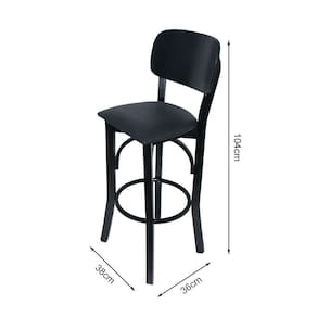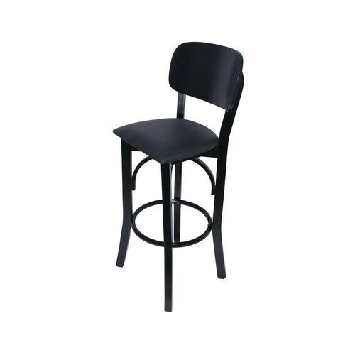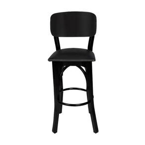 Banqueta Fixa Anatômica Preta Em Madeira Maciça Estofada Preta Para Restaurantes - Cor: Preto