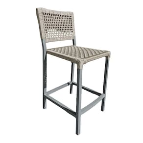 Banqueta França Em Corda Náutica E Base Em Alumínio Cinza Para área Gourmet Areia - Cor: Bege