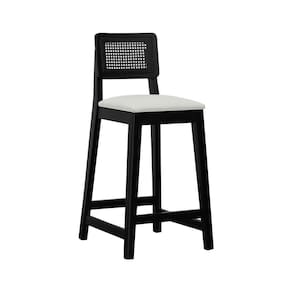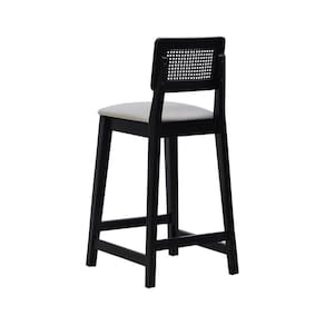 Banqueta Gabi Madeira Maciça Encosto C/ Telinha C/ 68cm Altura - Preto Assento Estofado Linho Bege