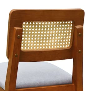 Banqueta Gabi Madeira Maciça Encosto Telinha C- 68cm Altura - Amêndoa Assento Estofado Linho Bege Mescla Impermeável