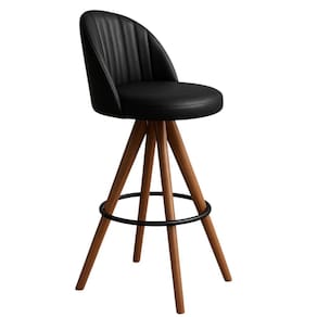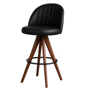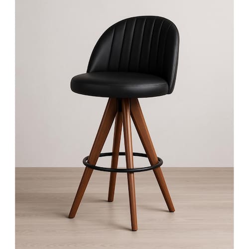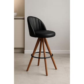 Banqueta Giratória com Assento Estofado e Base em Madeira Castanho – Lara Exclusiva Courino Durango Preto -