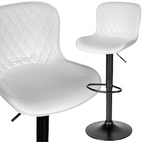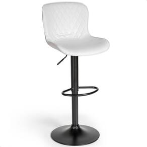 Madeira Compensada Estofada Revestida em Material Sintético, Aço em Preto FoscoBanqueta Giratória Com Encosto Alta Para Cozinha Bancada Bar Branco - P080