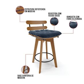 Pense nas suas necessidades e no seu espaço disponível, esse é o melhor modo para descobrir qual modelo de banqueta que se encaixa melhor na sua sala ou escritório. Se você precisa de uma peça diferente na sua decoração, uma forma barata e versátil de fazer isso é através da banqueta costela. Seu assento, encosto e base giratória são em madeira, as almofadas são super macias, em detalhes capitonê com fibra siliconada, revestido no tecido Suede no tom Azul Marinho. Ela pode servir como assento extra quando tem muitas pessoas na sala, ou até mesmo naquele churrasco entre amigos, assim ninguém fica deslocado, e a confraternização pode continuar. Então, que tal garantir nosso Kit 02 Banquetas Costela!