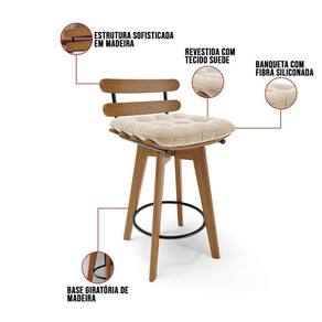 Banqueta Giratória Costela Suede Base Madeira Ma70 Cor Bege
