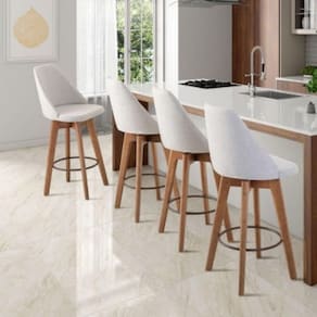 Banqueta Gourmet Giratória Maya- Tecido Linho Bege Claro Banqueta Maya Giratória - Aurora Line A Banqueta Maya possui assento e pés em madeira eucalipto com sistema giratório! Os pés contam com um reforço que proporciona um suporte de peso de até 120 Kgs.O assento é revestido com espuma D-23. Além de bonita e charmosa, vai trazer para seu ambiente elegância e proporcionará conforto para sua família e amigos nos momentos de lazer.