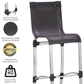 ESPECIFICACOES TECNICAS: - Altura total: 107cm - Altura assento ao chao: 72cm - Largura: 40cm - Profundidade: 50cm - Suporta ate 180 kg