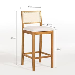 Banqueta Ibiza Baixa Encosto Telinha Madeira Maciça Pinhão Linho Palha -