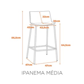 A Banqueta Ipanema tem seu assento em polipropileno, garantindo modernidade e facilidade na sua utilização. Sua base é em aço, pintada da mesma cor do assento.