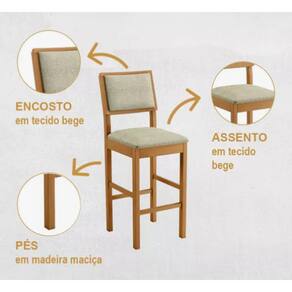Estrutura em madeira maciça Assento estofado em espuma D23 Encosto estofado com espuma D20 Suporta até 120 Kg Embalagem individual