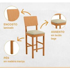Banqueta Jade 01 Madeira Maciça Caramelo Courino JCM Movelaria