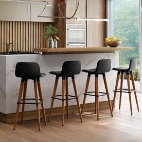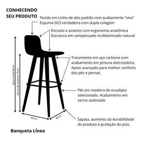 Banqueta Linea Para Area Gourmet Com Encosto Estofado em Linho Preta 4 Unidades - Preto