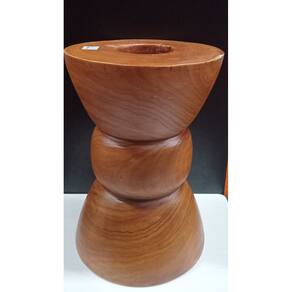 Altura: 44,6 cm Largura: 26 cm Profundidade: 26 cm Espessura: 9,6 cm Peso: 5,80 Kg Diâmetro da Base: 31 cm Diâmetro do Corpo: 20 cm Diâmetro do Topo: 11 cm Material: Madeira Cor: Marrom