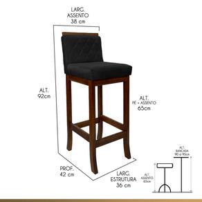 Apresentamos a banqueta Nice, feita com madeira maciça de reflorestamento e acabamento em verniz. Seu assento preenchido com espuma D26 e encosto com espuma D23 garantem conforto duradouro. O encanto adicional vem da costura matelassê no encosto, enquanto o revestimento em suede adiciona uma sensação de luxo. Adapta-se perfeitamente a qualquer espaço, adicionando elegância e conforto instantaneamente. CARACTERÍTICAS TÉCNICAS: - Produzido em Madeira Maciça de Reflorestamento; - Acabamento em Verniz na cor Castanho; - Assento Preenchido com Espuma D26; - Encosto Preenchido com Espuma D23; - Encosto com Costura Matelassê; - Revestimento em Suede na cor Preto. *Indicada para Bancadas/Mesas com Alt. 90/95 cm. *PRODUTO ENVIADO MONTADO. INFORMAÇÕES TÉCNICAS: Altura Total: 92 cm Altura até Assento: 65 cm Altura até Travessa: 13 cm Altura Encosto: 35 cm Largura Assento: 38 cm Largura Estrutura: 36 cm Profundidade Total: 42 cm Profundidade Assento: 41 cm Peso: 7 kg INFORMAÇÕES ADICIONAIS:ATENÇÃO: Móvel produzido em madeira maciça natural podendo ocorrer mudança no tom da madeira conforme o produto;*Conferir se o produto está de acordo com o que comprou, produto danificado não será aceito troca;**As imagens ambientadas são meramente ilustrativas e podem apresentar itens que não compõe o produto. As cores do produto podem variar de acordo com o monitor, a iluminação do ambiente ou sua percepção visual;***Limpeza deve ser feita com pano macio e seco ou levemente umedecido com água e sabão neutro. Não devem ser utilizados abrasivos como palha de aço e objetos cortantes;Garantia para defeitos de fabricação conforme Código de Defesa do Consumidor. Marca: CCS Interiores