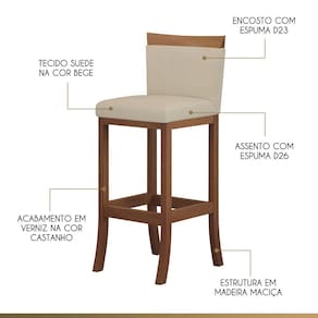 A Banqueta Média Estofada Paris é um móvel versátil que vai deixar seu ambiente cheio de estilo. Possui um design atual com cores sobreas que pode ser aplicada em diversas composições e decorações. Por causa da sua versatilidade consegue ser utilizada em diferentes ambientes como bancadas altas, espaços gourmet, salão de festas, bares, cantinho do churrasco ou onde você precisar. Seu assento é preenchido com espuma D26, o encosto com espuma D23 e o revestimento é com tecido suede que proporciona conforto e elegância. A Banqueta Paris é produzida com materiais de excelente qualidade, garantindo sua durabilidade e vida útil. Móveis sofisticados e com alta qualidade, só na CCS Interiores.