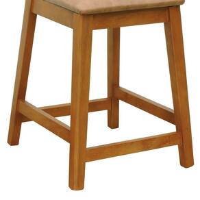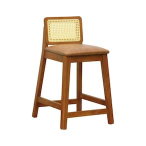 Banqueta Média Gabi Madeira Maciça Telinha Natural - Amêndoa Assento Estofado Corano Marrom Mescla