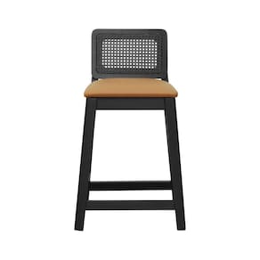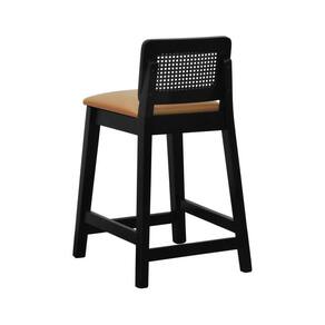 Banqueta Média Gabi Madeira Maciça Telinha - Preto Assento Estofado Corano Caramelo