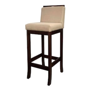 CARACTERÍTICAS TÉCNICAS: - Produzido em Madeira Maciça de Reflorestamento - Acabamento em Verniz na cor Capuccino - Assento Preenchido com Espuma D26 - Encosto Preenchido com Espuma D23 - Revestimento em Suede na cor Bege *Indicada para Bancadas/Mesas com Alt. 90/95cm *PRODUTO ENVIADO MONTADO.