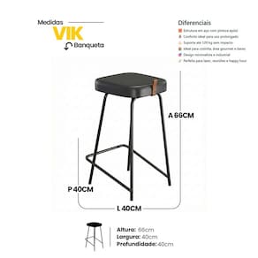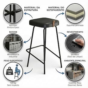 A Banqueta Média Vik Estofada é a escolha ideal para quem busca conforto, design moderno e durabilidade para ambientes com bancada média. Com visual industrial e linhas minimalistas, ela valoriza o espaço e entrega praticidade no uso diário.