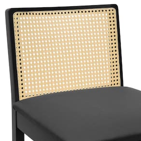 - Materiais: Estrutura em madeira de eucalipto maciço envernizado, assento estofado e encosto com telinha aplicada