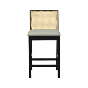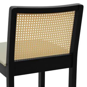 Banqueta Média Pérola - Preto Assento Estofado Linho Bege