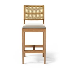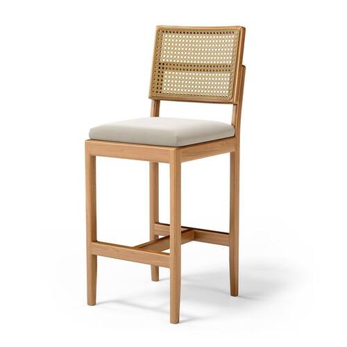 Banqueta Milena Madeira Maciça Assento Estofado Encosto De Tela Palha Sextavada - Bege