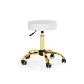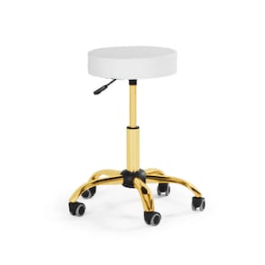 Banqueta Mocho Sem Encosto com Regulagem de Altura - Branca | Dourado Brilho.