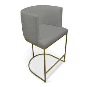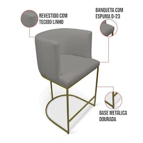 Banqueta Paola Linho Grafite A26 Base Metálica Dourada - D'rossi