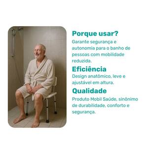 A Banqueta de Banho com Encosto MBA023C da Mobil Saúde foi desenvolvida para oferecer segurança, conforto e estabilidade durante o banho de pessoas com mobilidade reduzida, idosos ou em recuperação física.