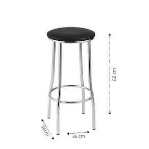 BANQUETA TUBULAR CROMADA COM ASSENTO REVESTIDO EM SINTÉTICO PRETO. TEM ALTURA TOTAL DE 62 CM. POR SER EM COR NEUTRA COMBINA COM QUALQUER DECORAÇÃO. PODE SER UTILIZADA EM COZINHAS JUNTO A BANCADAS, ESPAÇO GOURMET OU EM SALAS DE ESTAR. Acabamento da Estrutura: Cromado Altura do assento até o chão: 62 cm Altura Regulável: Não Ambiente Principal: Cozinha Cor: Preto/Cromado Cor do Produto: Preto/Cromado Dobrável: Não Escala de Brilho: Brilhante Itens Inclusos: 01 banqueta Material do Assento: Aço Necessita Montagem: Não Origem do Produto: Nacional Peso: 3,19 kg Possui Almofada no Assento: Não Possui Encosto: Não Possui Rodízio: Não Recomendações de Uso, Manutenção e Limpeza: pano seco Tipo de Assento: Fixo