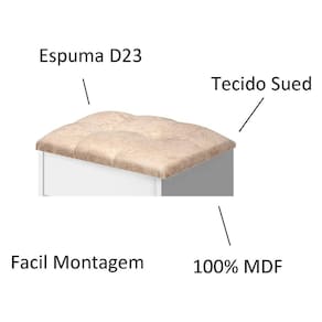 BANQUETA CAMARIM PLUS A Banqueta CAMARIM PLUS é o item que falta para a sua penteadeira. Versátil, ela serve também para colocar em qualquer lugar do quarto, utilizando para sentar ou até mesmo para apoiar e descansar os pés. Conforto e estilo para seu ambiente, com um design moderno.DESCRIÇÃO DO PRODUTOProduzido em 100% MDF de ótima qualidade. Acabamento interno e externo.Suporta até 95 kgEstofado com tecido SuedEspuma D26DIMENSÕES BANQUETA CAMARIM PLUS Altura: 42 cmLargura: 380 cmProfundidade: 24 cmMontagem por conta do comprador, a loja não oferece serviço de montagem. Todos os nosso moveis possuem manual de montagem.
