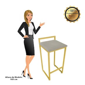 Banqueta Pietra Suede Base Dourado D'Rossi
