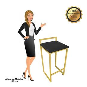 Banqueta Pietra Suede Preto D'Rossi Base Dourado D'Rossi