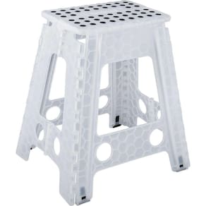 Especificações Marca: Kala Modelo: 931993 Cor: Branco Material: Plástico Polipropileno Altura: 45 cm Largura: 34.5 cm Peso: 1.36 kg Peso Máximo Suportado: 150 kg Dimensões Aberta: 40x34,5x45 cm Dimensões Fechada: 40,5x5x57,5 cm Itens Inclusos 1 Banqueta Plástica Dobrável Branca 45cm Kala Perguntas Frequentes (FAQ) Pergunta: Qual o peso máximo suportado pela banqueta?