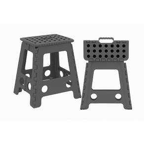 Design dobrável e funcional: Com dimensões de 45cm de altura, 41cm de largura e 33cm de profundidade, a banqueta é prática e econômica em espaço. Quando dobrada, pode ser guardada com facilidade em armários, vãos ou cantos da casa.