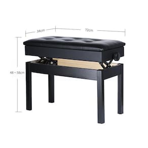 Altura do banco de piano é 100% ajustável, de modo que cada membro da sua família pode usá-lo facilmente. Tudo o que você precisa fazer é girar os botões simples e ajustar a altura de 48 cm para 58 cm. Além disso, o produto conta com um espaço de armazenamento conveniente e escondido, sob o assento, que pode guardar suas partituras ou livros