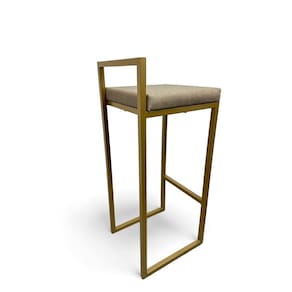 Banqueta Quadro Estofado Bege com Encosto Metalon Dourado - Amarelo Ouro
