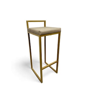 Banqueta Quadro Estofado Bege com Encosto Metalon Dourado - Amarelo Ouro